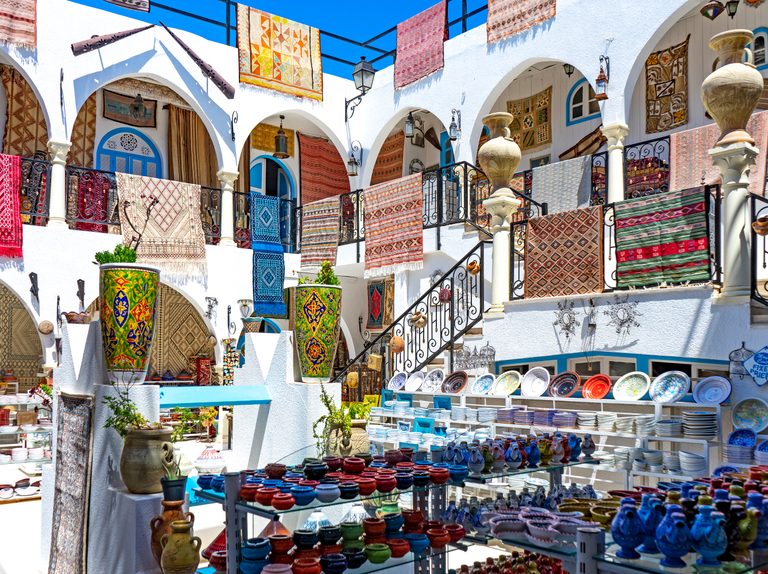 Previous Image Next Image Tunisia. Djerba Tunisia. (Southern Tunisia). Island of Djerba. Houmt Souk. June 29, 2019. Souvenir shop for tourists in the Medina